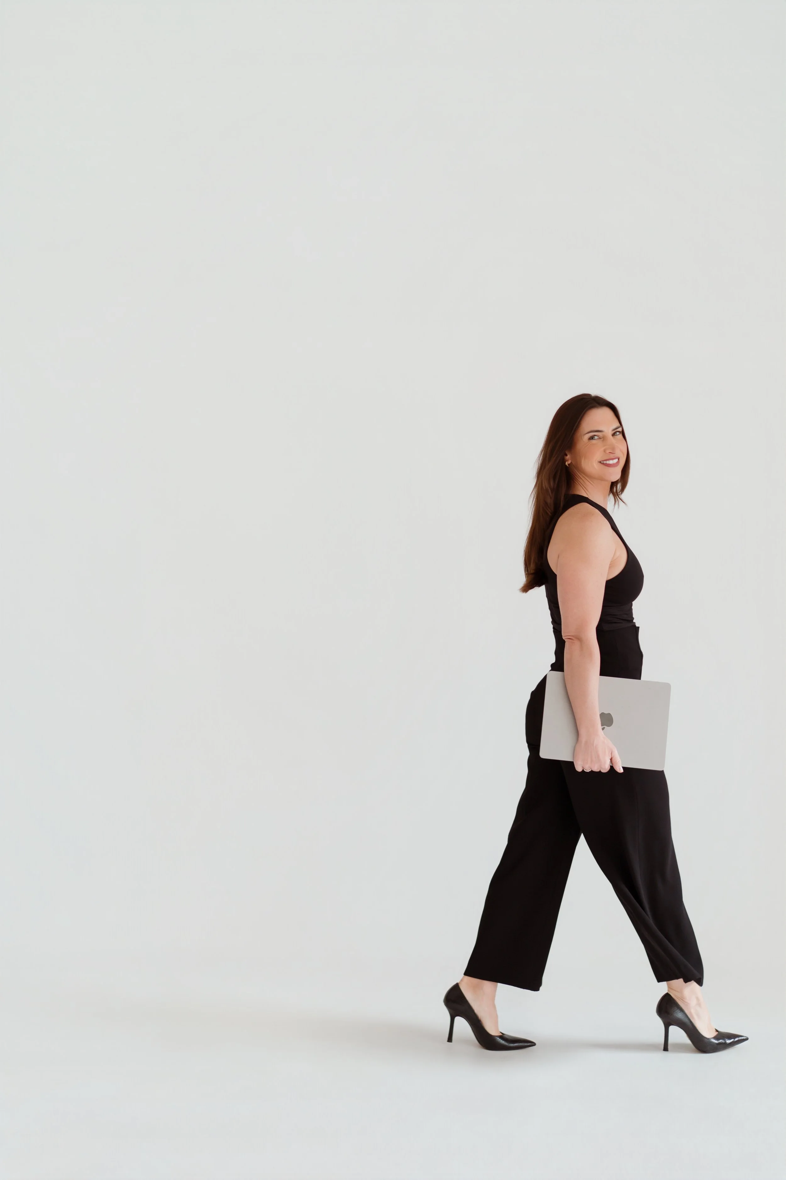 The studio shots leaned into the editorial brief. Tash wore all black throughout, tailored, sharp and effortlessly elevated and we used intentional motion blur to capture her in movement. These are the kind of images that stop the scroll. They work beautifully for website headers, social media and PR.